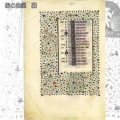 1400年代半ばのフランス・パリでイングランド王ヘンリー5世の弟であるベッドフォード公爵・ジョン・オブ・ランカスターが運営に深くかかわった「ベッドフォード師範の美術学校」に属するアーティストによって書かれた時祷書の1ページです。