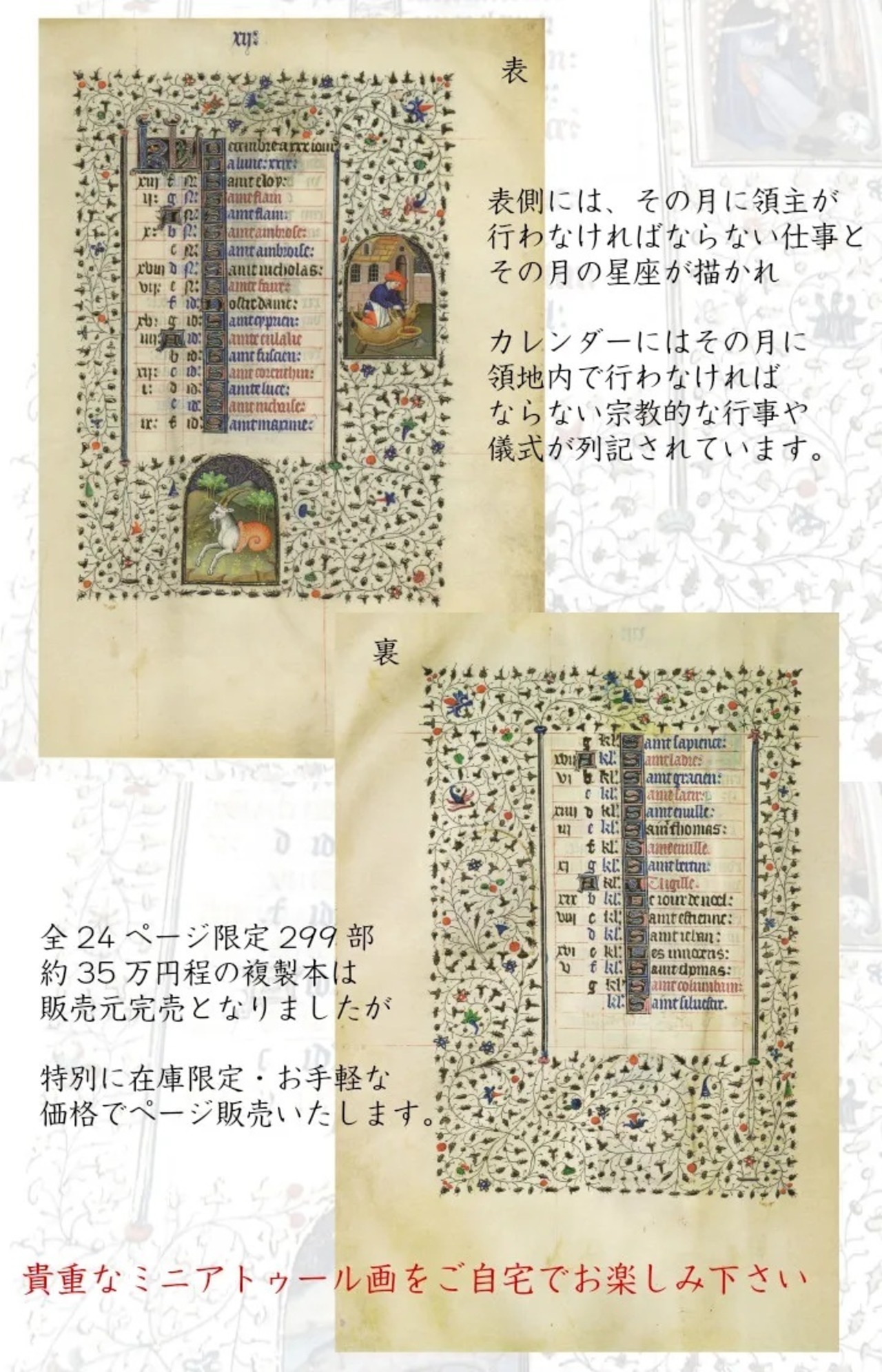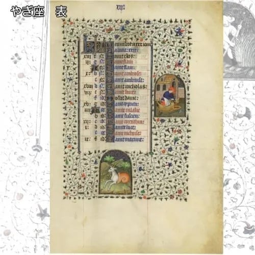 カレンダー やぎ座 サヴォイア家至宝の時祷書単ページ 装飾写本 ミニアトゥール画 イタリア文化財庁承認 詳細複製本